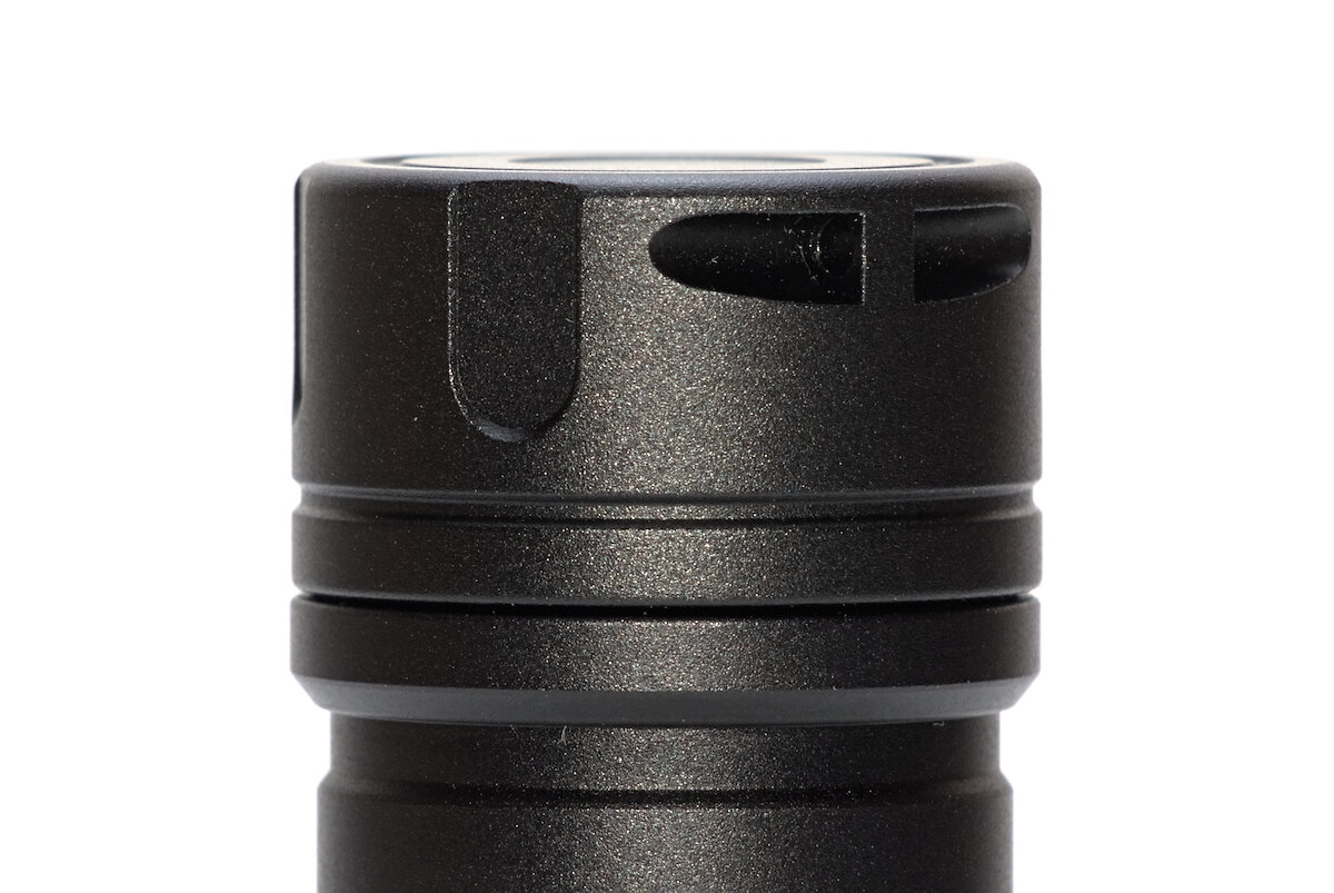 Im gesperrten Zustand leuchtet der Taster etwa alle zwei Sekunden für eine knappe Sekunde rot auf, sodass sich die Lampe im Dunkeln besser finden lässt. Dieser Indikator lässt sich über einen Doppelklick aus- und einschalten, aktiviert sich jedoch bei jedem Sperren erneut. Natürlich lässt sich die Lampe auch durch Lockern der Tailcap mechanisch gegen versehentliches Einschalten sichern.