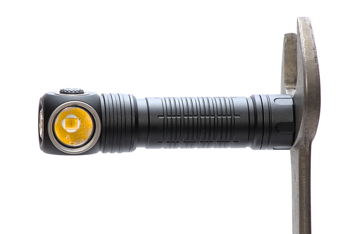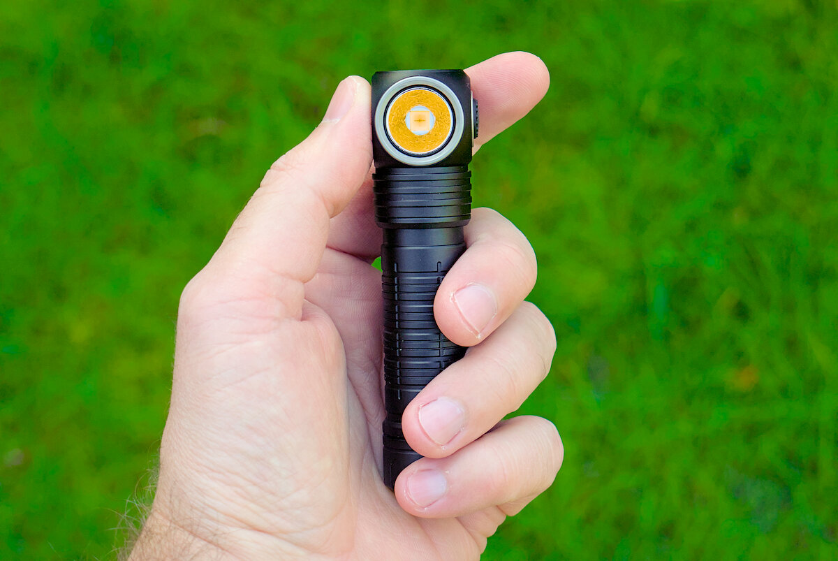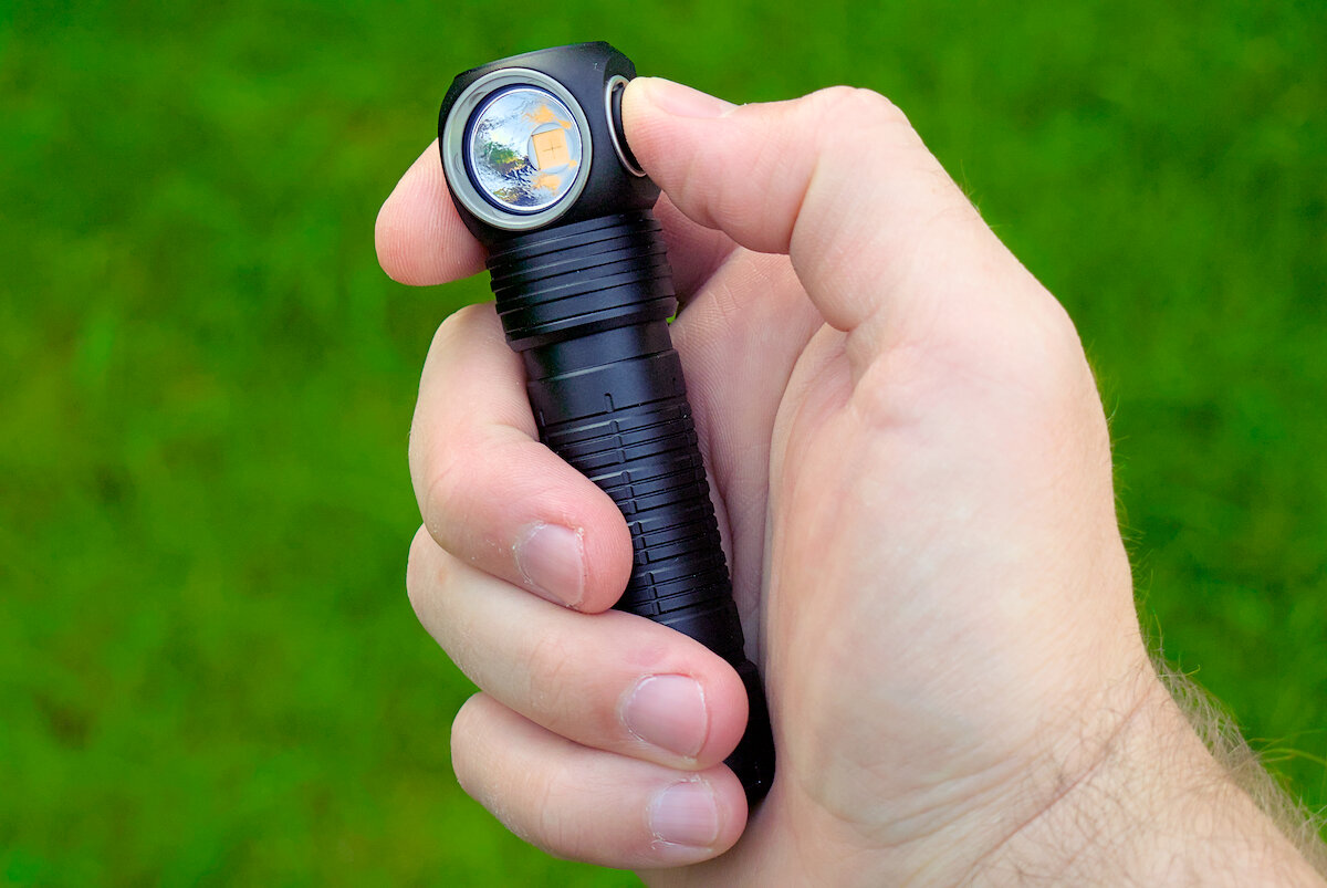Die H300 überzeugt nicht nur als Kopflampe, sondern auch in der Hand. Im Vergleich zu einer reinen Handlampe bietet eine Winkellampe deutlich mehr Flexibilität. Der Taster ist wegen der asymmetrischen Form der Lampe leicht zu finden, kann durch seine exponierte Lage aber auch leicht versehentlich gedrückt werden. In der Tasche sollte die H300 daher besser gesperrt werden, beispielsweise durch Lockern der Tailcap.