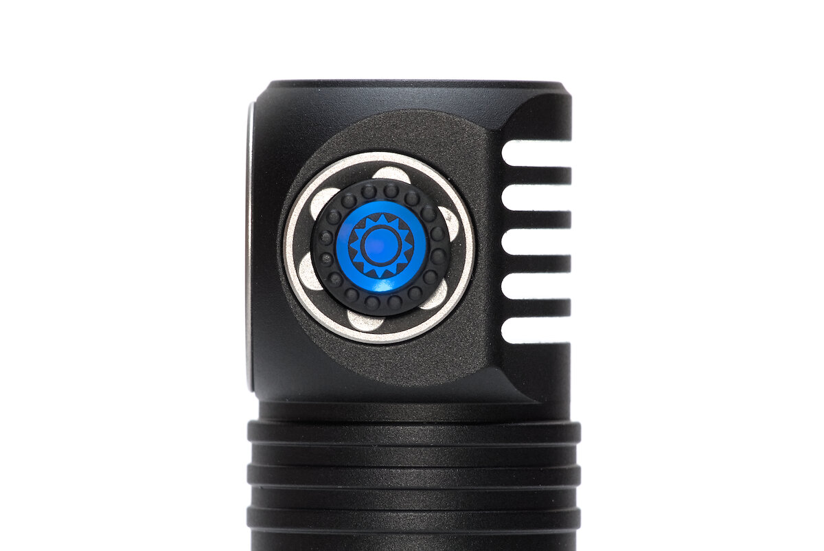Der Taster zur Steuerung der Lampe befindet sich seitlich am Kopf. Dadurch lässt er sich bequem durch ein „Zusammendrücken“ des Lampenkopfes mit zwei Fingern betätigen. Dies hat den Vorteil, dass sich die Lampe nicht verdreht oder verschiebt, wenn sie in der Kopfhalterung getragen wird.