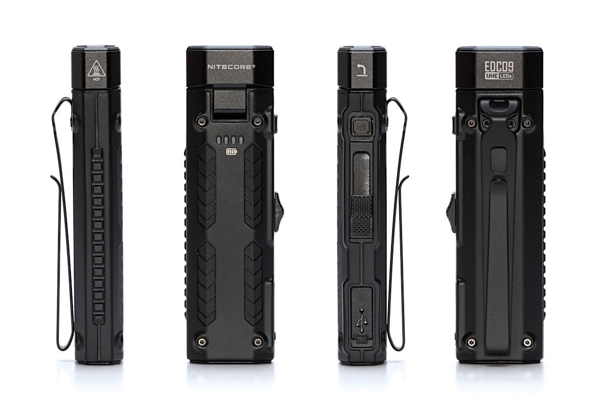 Die Nitecore EDC09 überzeugt nicht durch Spielereien, sondern durch sinnvolle und durchdachte Funktionen. Mit den beiden „MCT UHE“-LEDs lässt sich die Farbtemperatur in drei Stufen von warmen 3000 K bis zu kalten 6500 K einstellen und somit an die jeweilige Situation anpassen. Der stufenlos neigbare Lampenkopf macht die Lampe zusammen mit dem integrierten Magneten und dem Zweiwege-Clip vielseitig einsetzbar.
