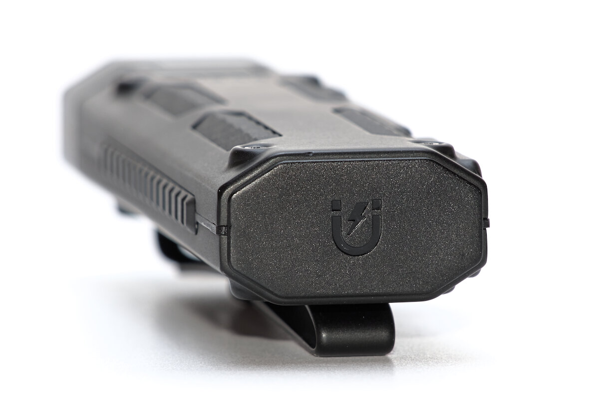 Ein kräftiger Magnet ermöglicht die Befestigung der EDC09 an magnetischen Oberflächen. Das Ende der Lampe besteht aus Kunststoff, wodurch Oberflächen etwas besser vor Kratzern geschützt sind.