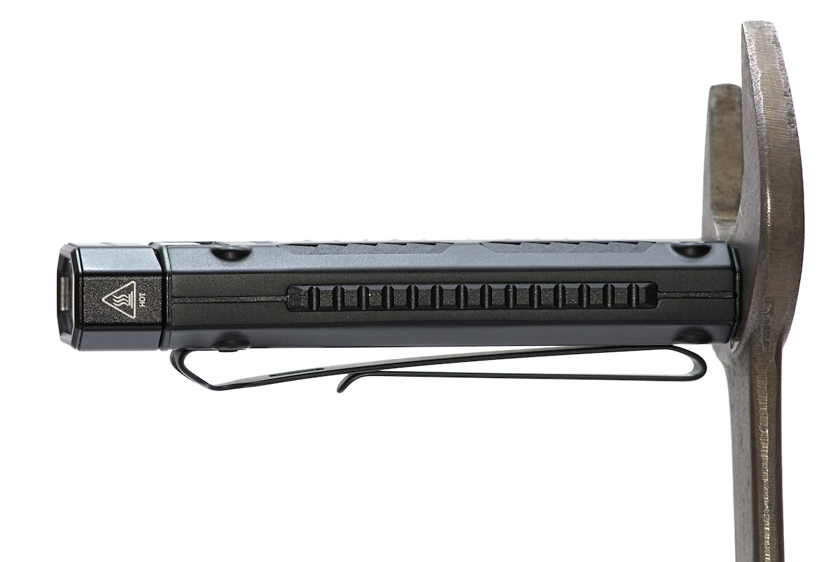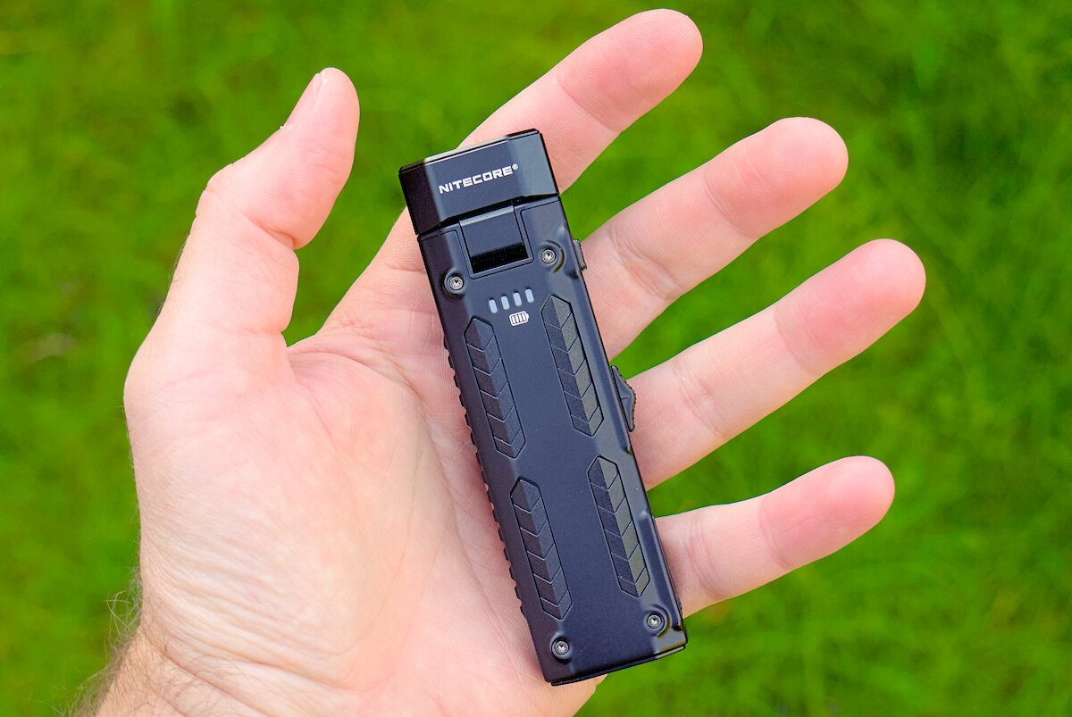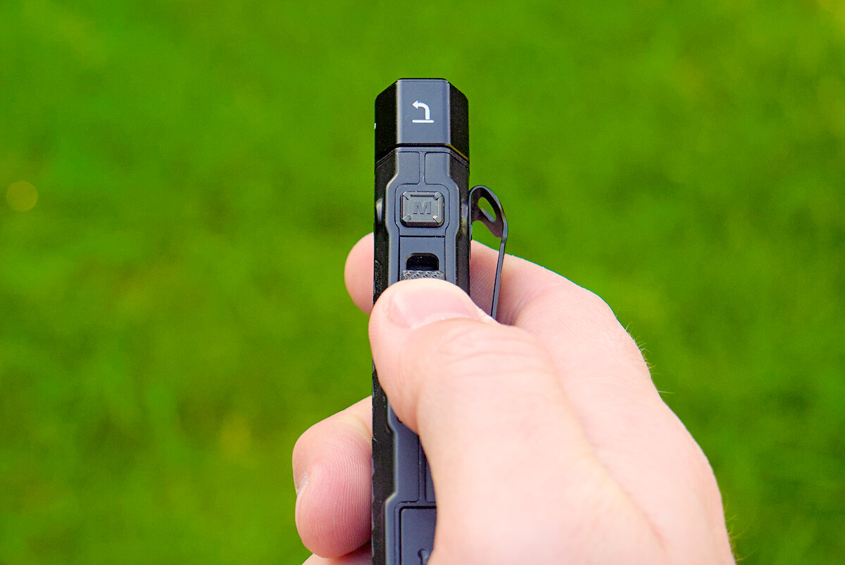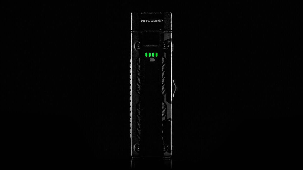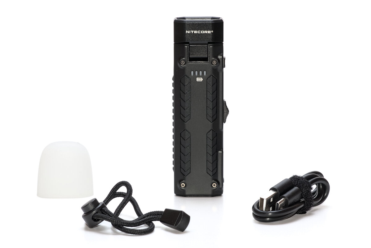 Auf der rechten Seite befinden sich ein Schiebeschalter und ein Taster, die in identisch Form bereits bei der kürzlich erschienenen Nitecore EDC17 zum Einsatz kamen.