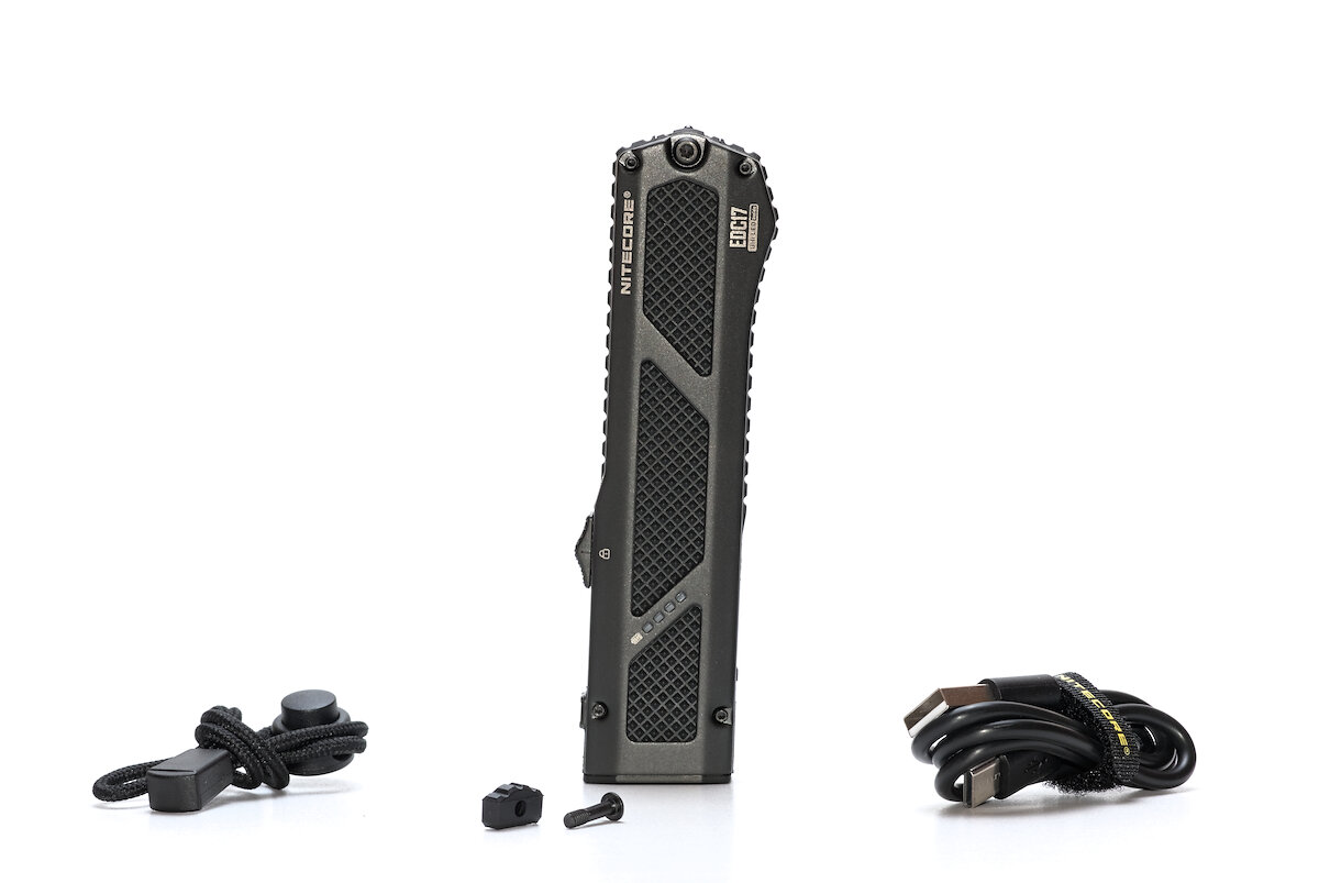 Nicht einfach nur eine Taschenlampe: Mit ihrem auffälligen Design, das einem OTF-Taschenmesser nachempfunden ist, präsentiert sich die Nitecore EDC17 als ein stilvolles EDC-Accessoire. Zusätzlich zum weißen Licht bietet sie auch einen grünen Laser sowie ein kräftiges UV-Licht mit 365 nm. Doch das Highlight ist ihr intuitives Bedienkonzept mit einem Schiebeschalter, über den sich die Helligkeit bequem verstellen lässt.