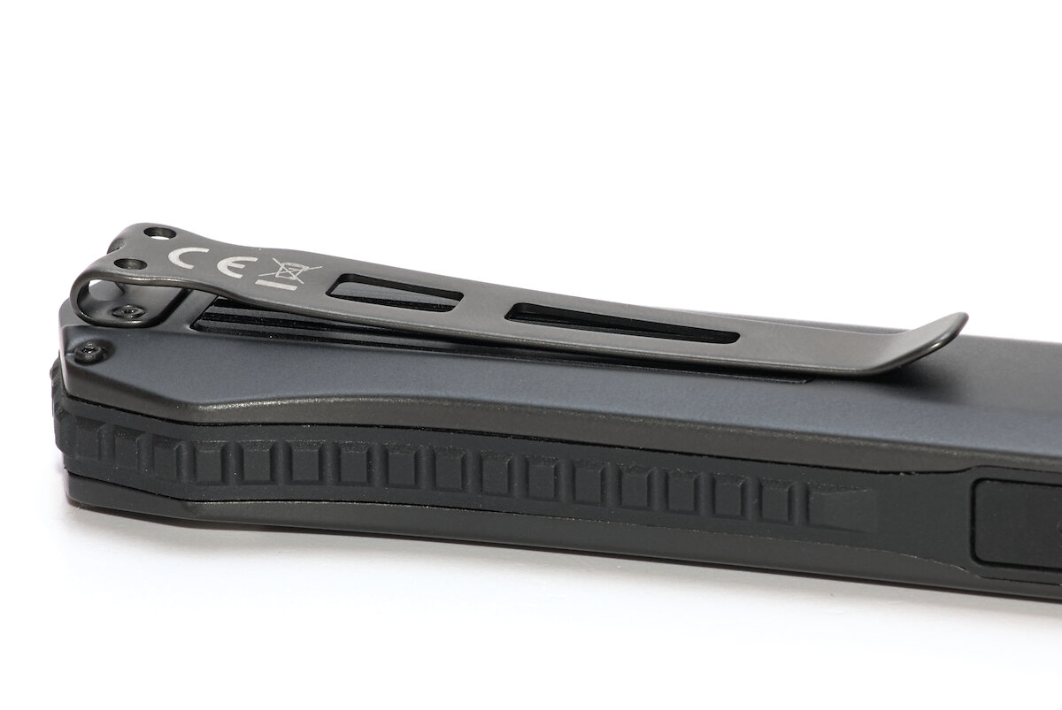 Der mit zwei Schrauben befestigte Clip ist flach und lang, hat eine angenehme Öffnung und genau die richtige Spannung. Er ist so weit hinten angebracht, dass die Lampe vollständig in der Tasche verschwindet. Kurz: Er ist perfekt.