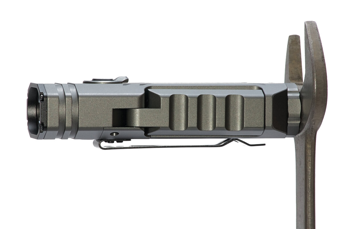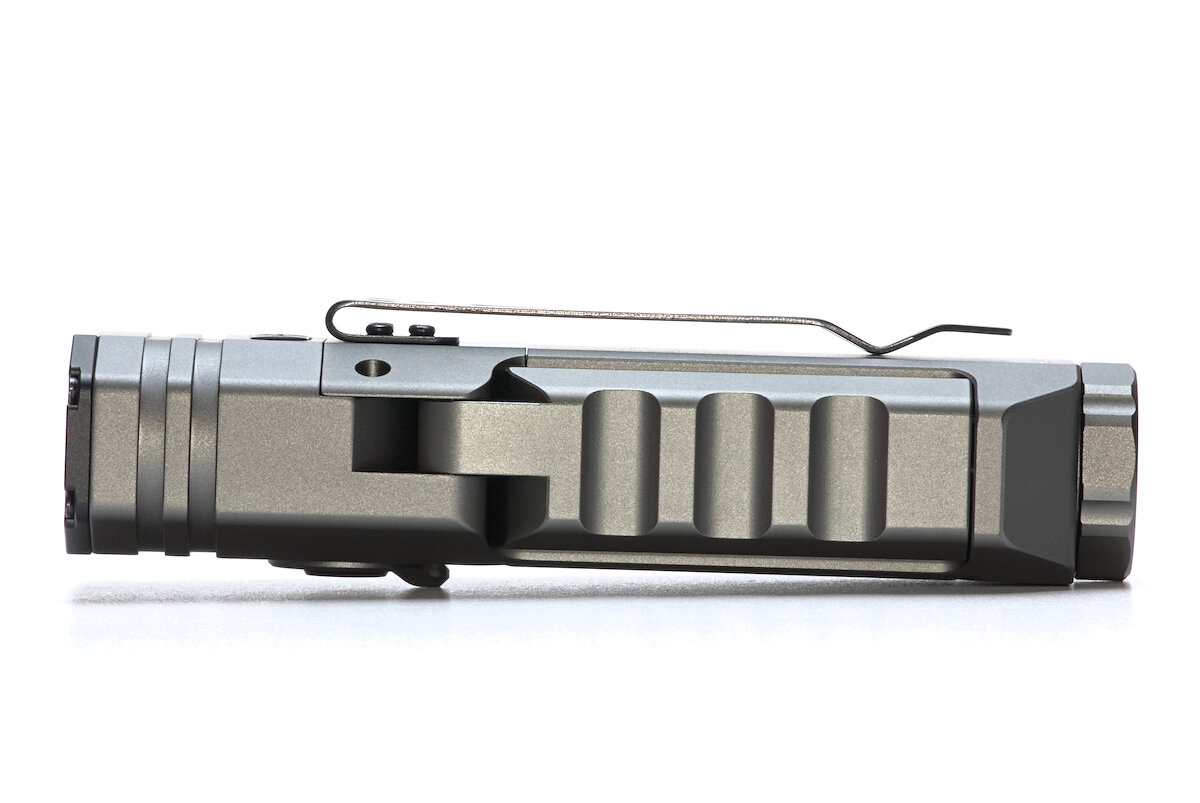 Das Erscheinungsbild der HD02 ist ungewöhnlich. Auf den ersten Blick erweckt sie den Anschein einer „flachen“ Lampe, wie sie in letzter Zeit in Mode sind. Die HD02 verwendet jedoch einen üblichen, runden 21700-Li-Ion-Akku und auch die Tailcap ist rund.