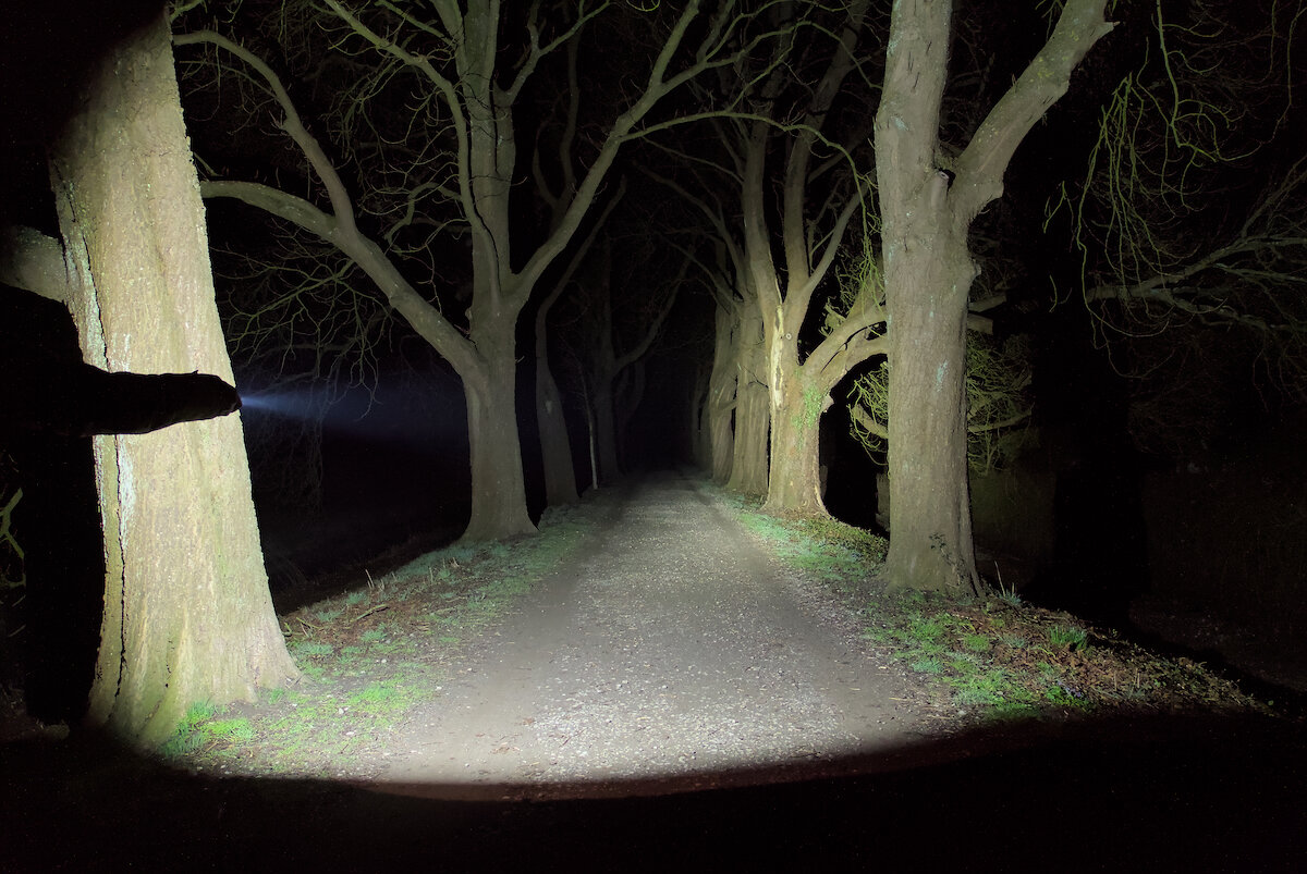 Für kürzere Entfernungen lässt sich zumindest die Helligkeit um eine Stufe reduzieren. Der ausgeleuchtete Bereich bleibt zwar klein, dafür wird man nicht mehr so leicht geblendet. Der schwache Spill hilft dann natürlich noch weniger.